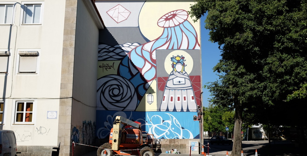 Corações, muitos corações, nossas senhoras, todo um imaginário que nos remete para o nosso Portugal tradicional. Nesta criação urbana surgem de forma inesperada imagens quase simbólicas que nos fazem lembrar uma tradição gótica ou românica, herméticas, fortes e bem marcantes.” (fonte: Walk&Talk 2012)