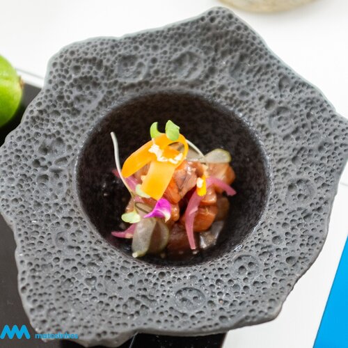 Demonstrando o potencial do fumo na gastronomia, Iñaki Bretal preparou três pratos distintos: Vieira defumada, Bonito do Atlântico curado e Robalo marcado na grelha. Cada um destes pratos destacou-se pelo equilíbrio entre tradição e inovação, refletindo a filosofia culinária do chef, que privilegia o respeito pelo produto e pelo seu sabor original.