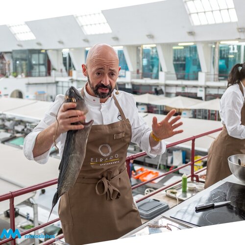 O chef do restaurante O Eirado, de Pontevedra, distinguido com uma estrela Michelin, trouxe consigo uma abordagem inovadora à confeção de produtos do mar, centrando-se na utilização do fumo na cozinha, uma técnica que realça os sabores e proporciona novas texturas aos ingredientes. Durante a sua apresentação, partilhou com os participantes técnicas avançadas e truques essenciais para dominar este método.