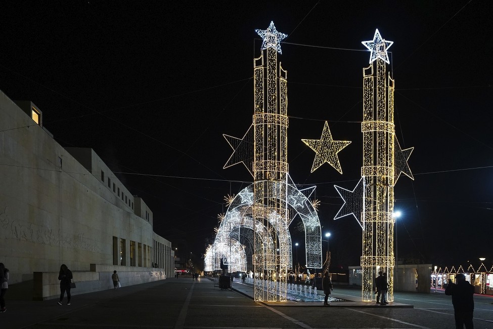 Mesmo em frente ao edifício dos Paços do Concelho, estará montada uma estrutura inovadora de iluminação natalícia, dinâmica, que proporcionará grandes espetáculos de luz, cor e som, com cerca de 200 mil pontos luminosos. O primeiro espetáculo de som e luz acontece já a 29 de novembro, a partir das 18h00. Um momento imperdível que voltará a repetir-se todos os dias pelas 17h30, 18h30, 19h30 e 21h30. Às sextas e sábados haverá também às 22h30.