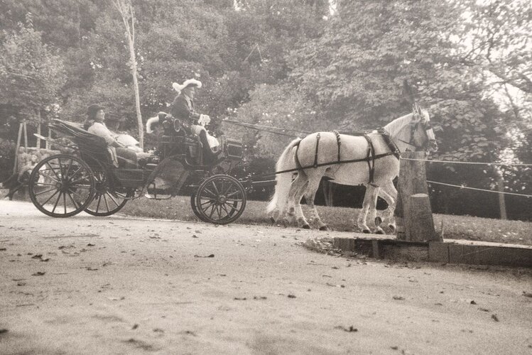 No exterior, houve passeios de charrete e sessões de fotografia “à la minute”.