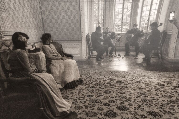 Usando adereços típicos daquela altura, como chapéus, relógios de bolso, sombrinhas, bengalas, estolas ou leques, os visitantes assistiram a um concerto do Quarteto de Cordas de Matosinhos, no Salão Luís XVI.