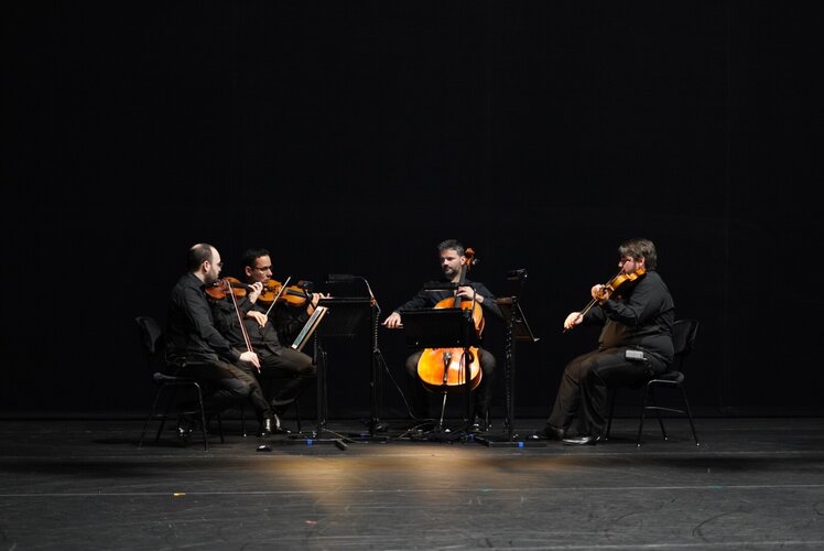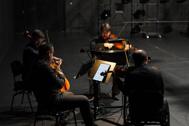 O Quarteto de Cordas de Matosinhos, presente em palco, está encarregue da interpretação musical. Podem ser escutadas obras de Ludwig van Beethoven em Grosse Fuge (Keersmaeker), espetáculo homónimo da peça musical deste compositor (op. 133, em Sib Maior); de Gavin Bryars em Avant Qu’il N’y Ait Le Silence (Lopez); e em Cacti (Ekman) desde improvisos e fragmentos de algumas obras de L.v. Beethoven, Franz Schubert e Joseph Haydn.