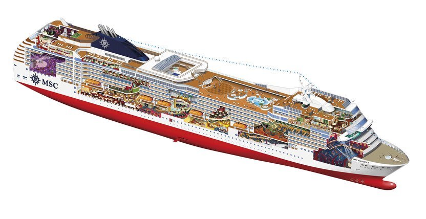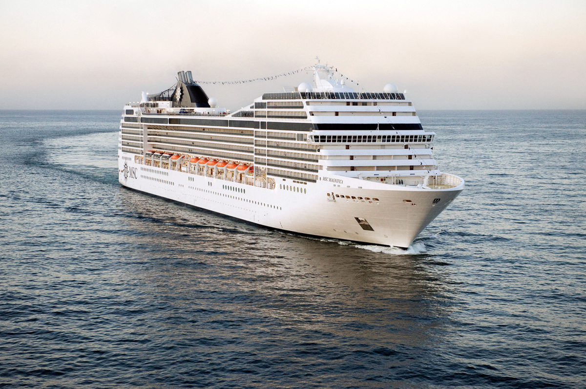 Trata-se do navio italiano MSC Magnífica, construído em 2009, com capacidade para 2500 passageiros e mais de mil tripulantes.
