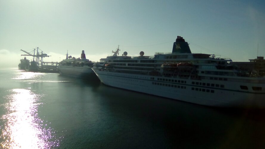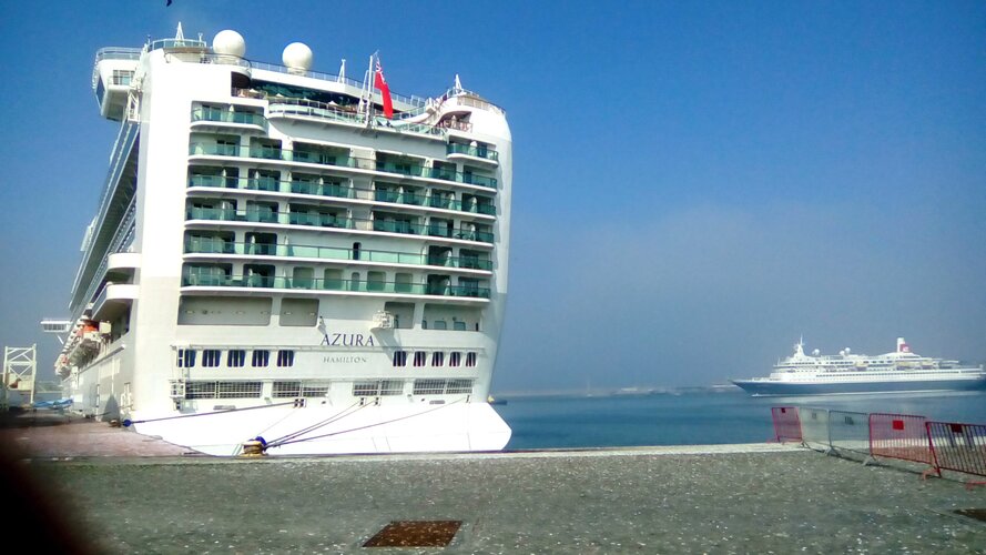 Do lado de Leça da Palmeira são bem visíveis os dois navios atracados: o clássico “Boudicca”, com cerca de 710 passageiros, proveniente do Funchal e com destino a Liverpool, e a embarcação “Amadea” com 534 passageiros maioritariamente alemães, vindo da Corunha seguindo para Lisboa.