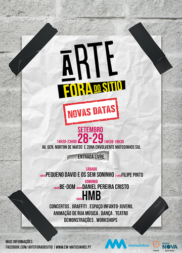 Música, artes circenses, dança, graffiti, desporto, animação de rua e solidariedade – a décima quarta edição do festival Arte Fora do Sítio volta a trazer para a rua o resultado do trabalho artístico dinamizado ao longo de todo o ano pelas associações locais com os jovens do concelho de Matosinhos. Nos dias 28 e 29 de setembro, a Marginal de Matosinhos acolherá um evento que, de um modo informal, reúne milhares de pessoas e celebra o culto das artes.