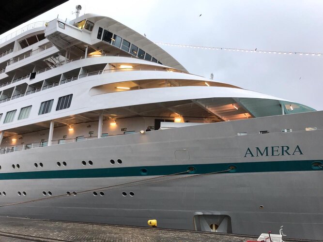 O navio Amera que chegou de Bilbao partiu ao final da tarde com destino a Lisboa. Encontra-se numa viagem de 18 noites de Bremerhaven (Alemanha) a Villefranche (França) com cerca de 650 passageiros a bordo, sobretudo de nacionalidade alemã. Deste itinerário fazem parte Honfleur, St. Malo, Bordéus, St. Jean de Luz, Bilbao, Leixões, Lisboa, Huelva, Gibraltar, Málaga, Port Mahon e St. Tropez.