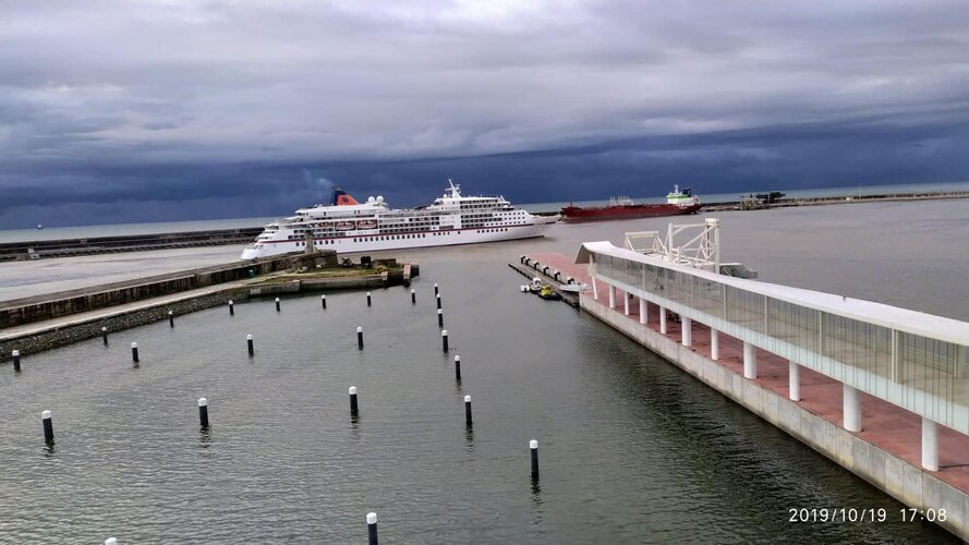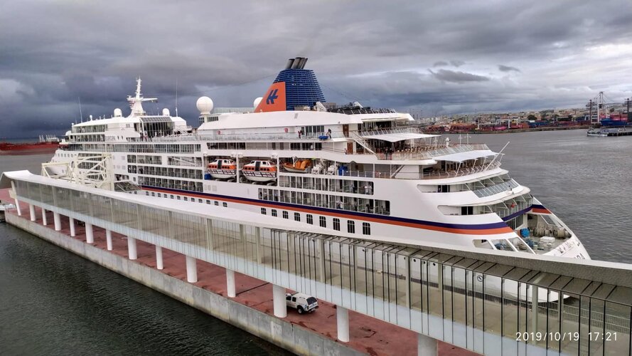 O luxuoso navio cruzeiro anunciou a sua visita a Matosinhos sensivelmente às 16h30 de sábado, dia 19 de outubro, precisamente no dia em que se assinalou a abertura ao público da exposição “Memórias, Projetos, Obras”, da autoria de Souto Moura, na Casa da Arquitectura, em Matosinhos, onde permanecerá até setembro de 2020.