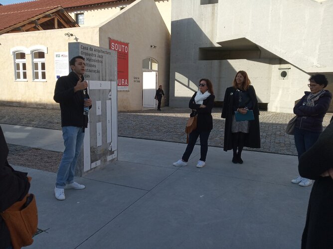 A visita teve início no Mercado Municipal, repleto de vida e dinamismo, típico de uma manhã de sábado, que maravilhou o grupo. De seguida, tiveram a oportunidade de visitar a Casa da Arquitetura e conhecer a mais recente exposição inaugurada na sua galeria: “Souto Moura: memória, Projectos, Obras”.