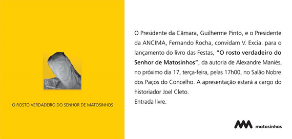"O ROSTO VERDADEIRO DO SENHOR DE MATOSINHOS" Salão Nobre dos Paços do Concelho |
