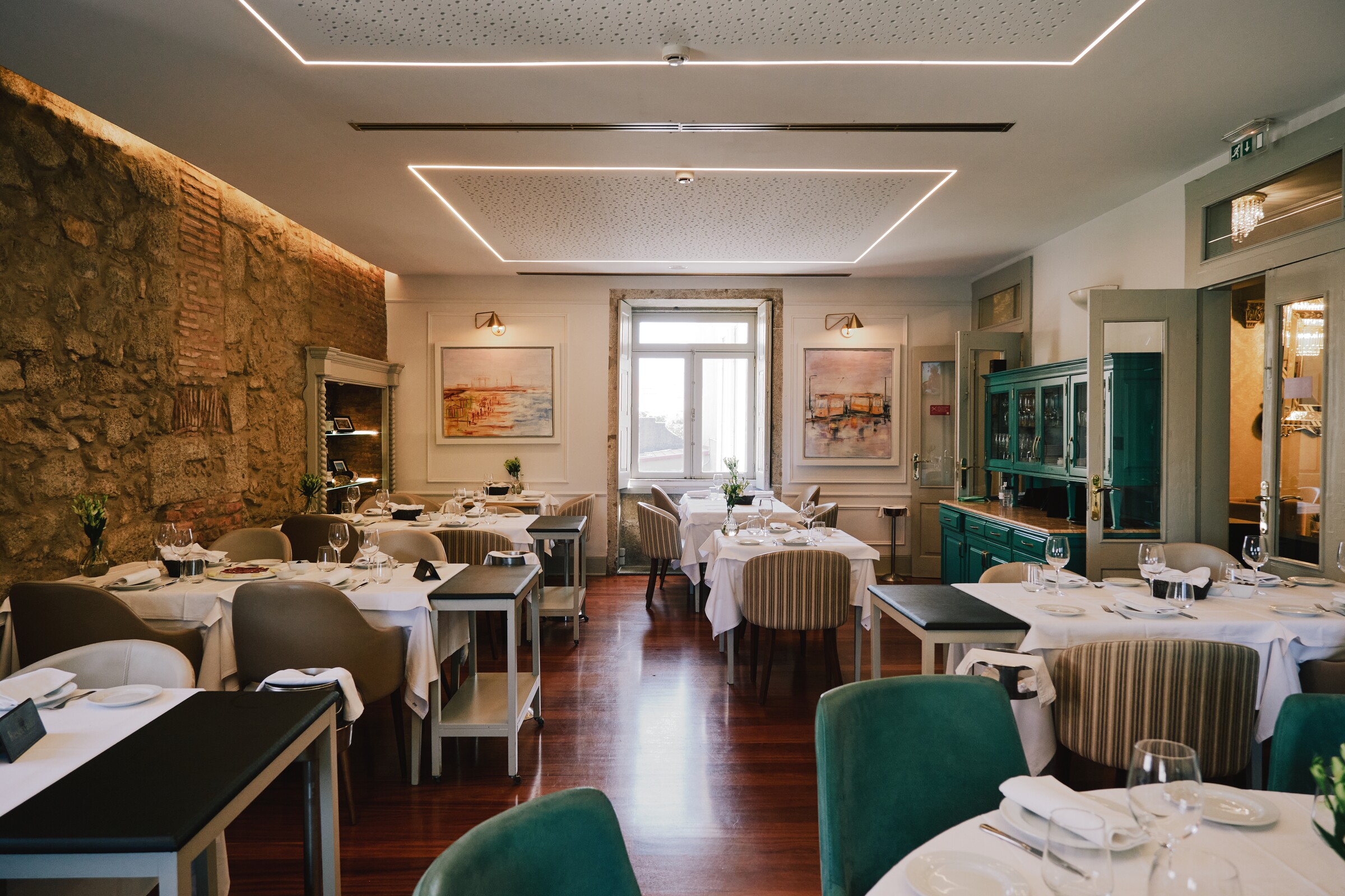 Situado na zona histórica de Leça da Palmeira, cidade conhecida por ser a mesa do Porto, fica numa casa de traça antiga mesmo em frente a um jardim.