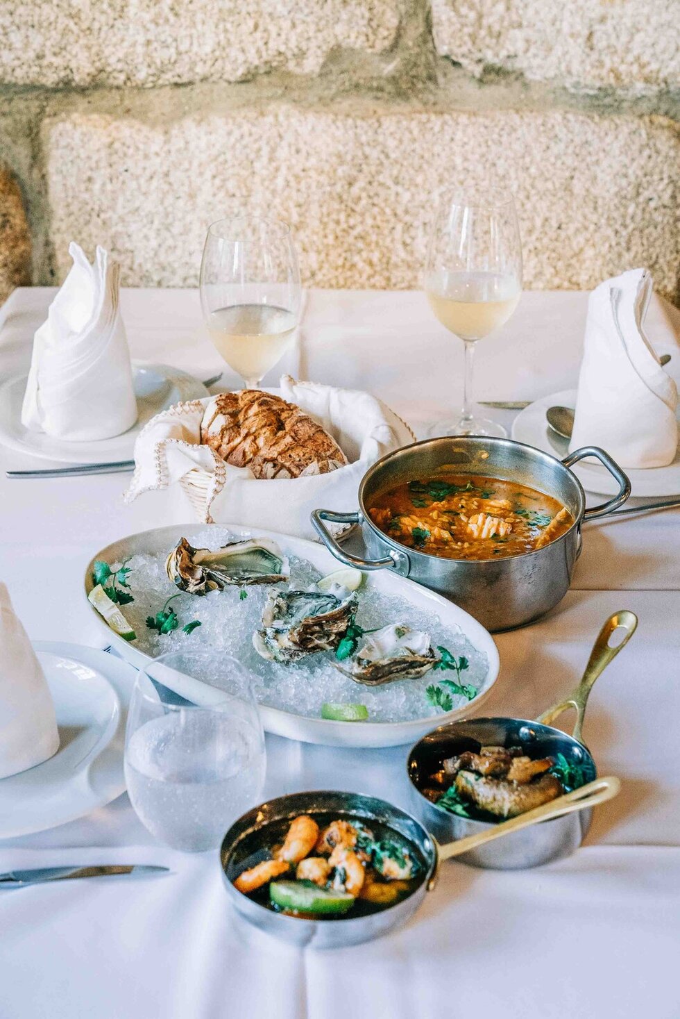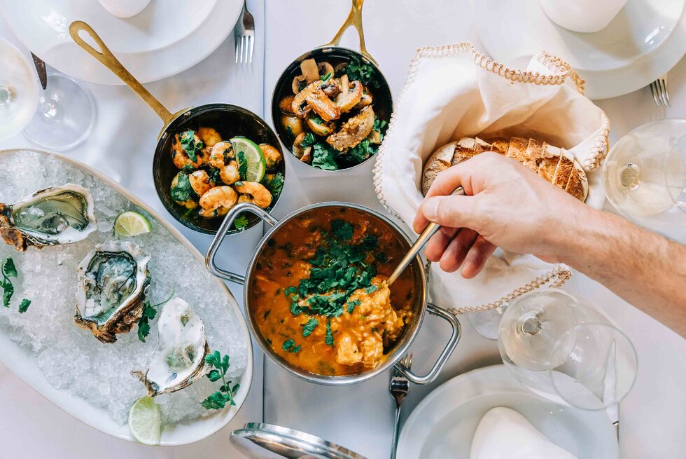 Ostras frescas, camarões com conhaque e arroz de raia são alguns favoritos da casa. O uso farto de ervas aromáticas, principalmente os coentros, dão uma especial fragrância aos pratos e perfumam o ambiente do restaurante.