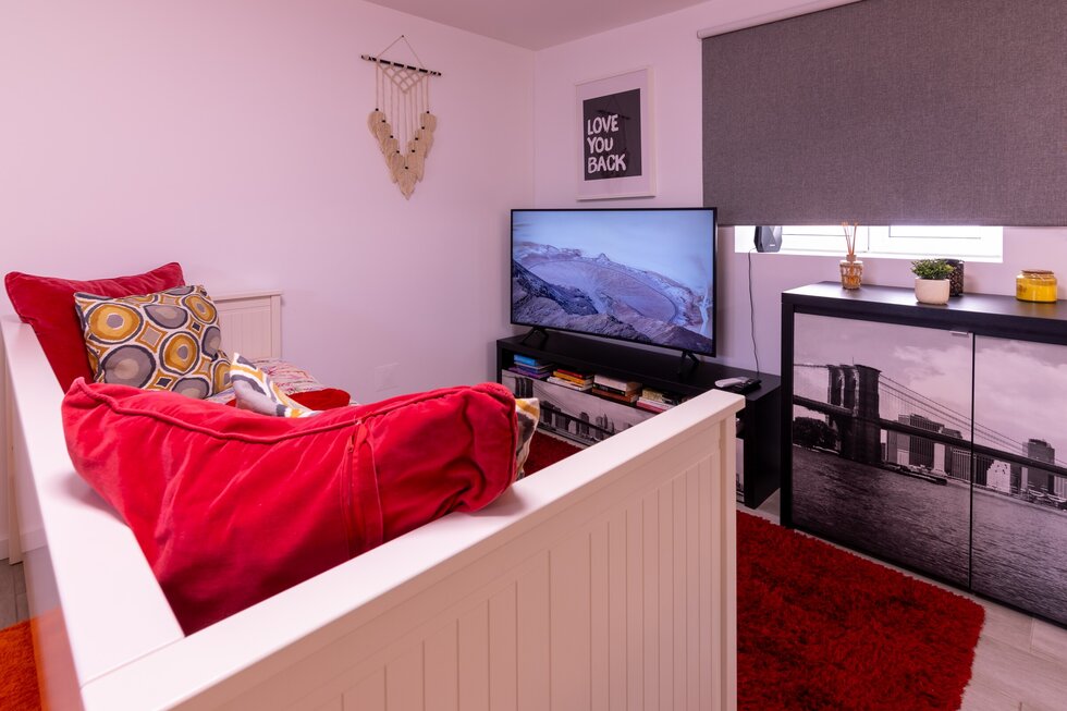 Com uma cama de casal (colchão EMMA para o melhor descanso possível) e um sofá-cama, ar condicionado, livros e jogos infantis e para adultos, é ideal para um casal ou família.