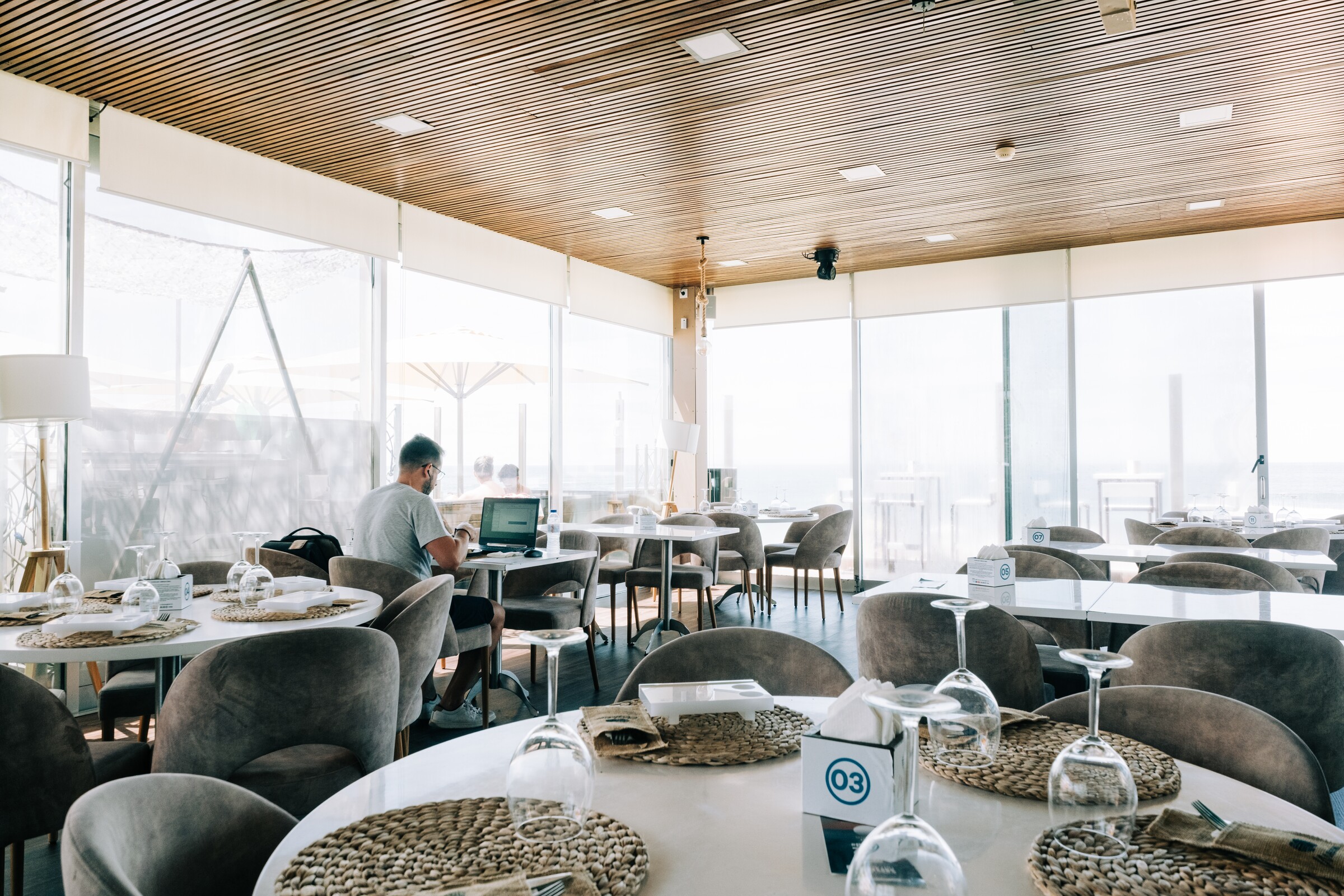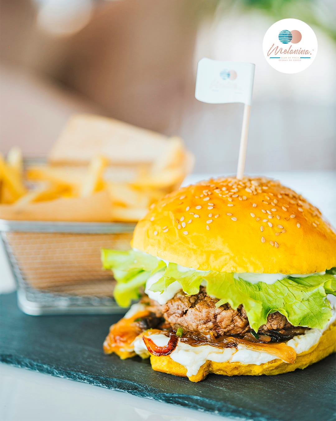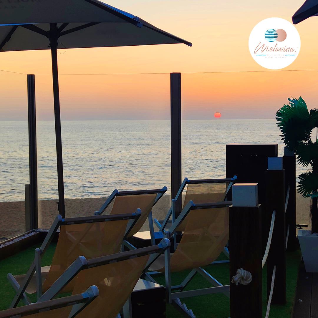 Com vista panorâmica para o mar, temos o Melanina. Club de Praia.