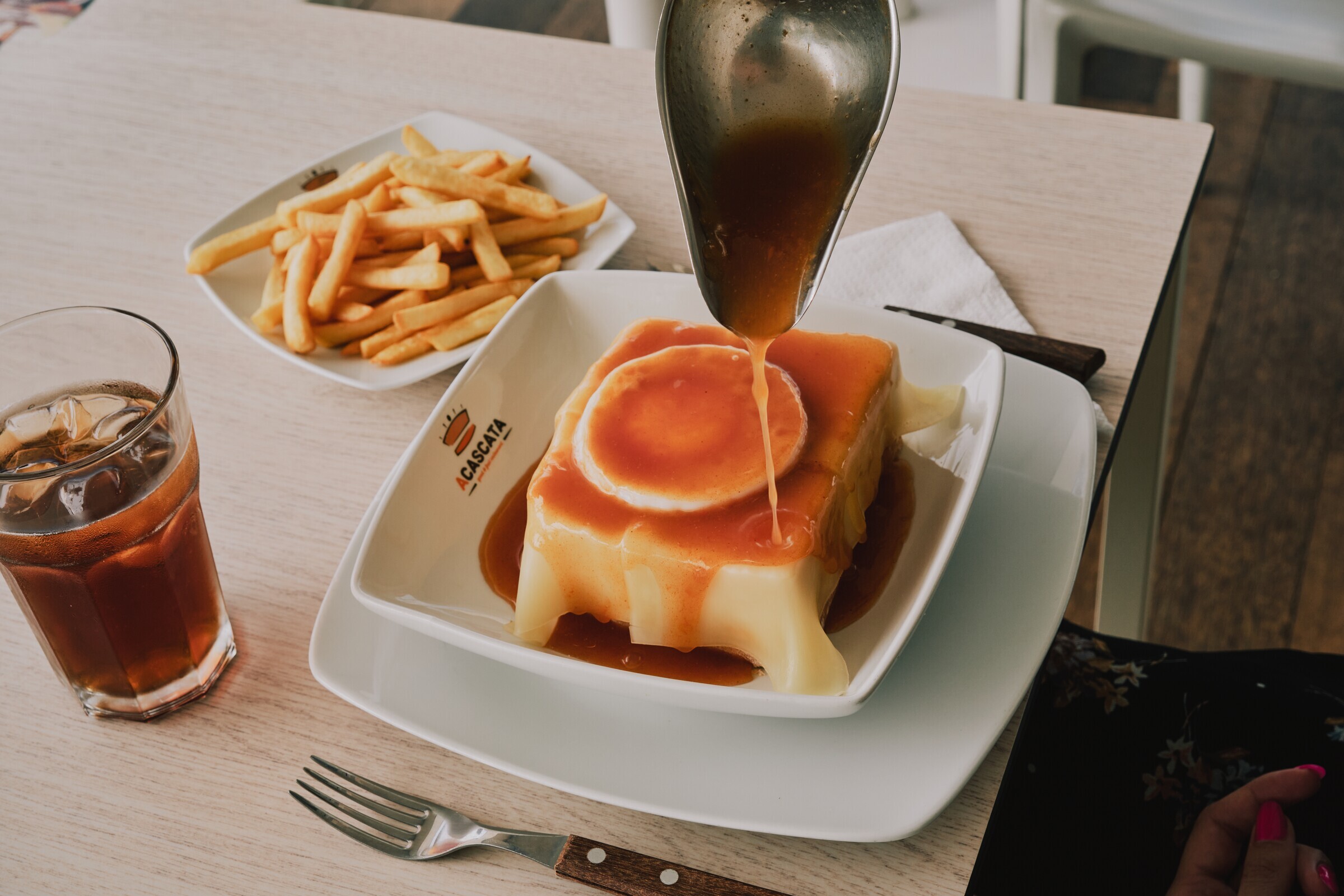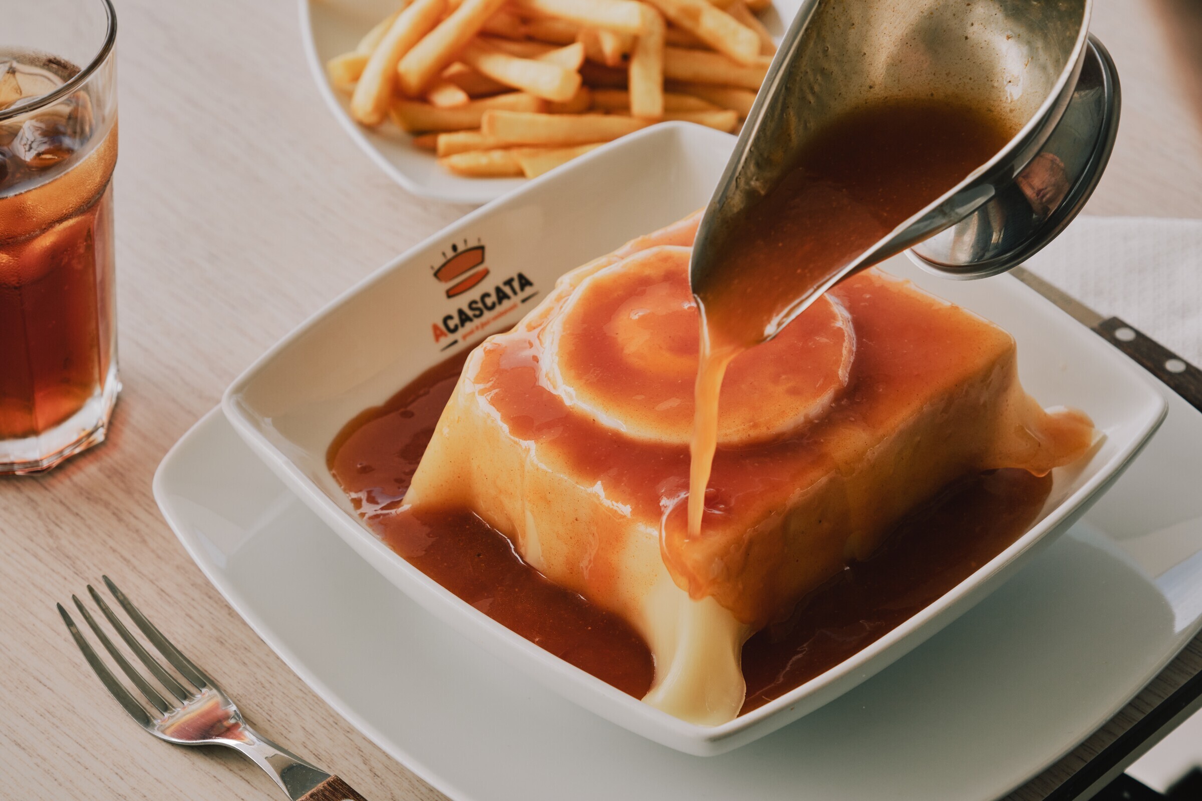 A Cascata faz parte de uma rede de restaurantes presente em Portugal desde 1992. Ao longo dos anos, tornou-se uma referência no sabor das francesinhas, especialidade da casa com molho exclusivo.