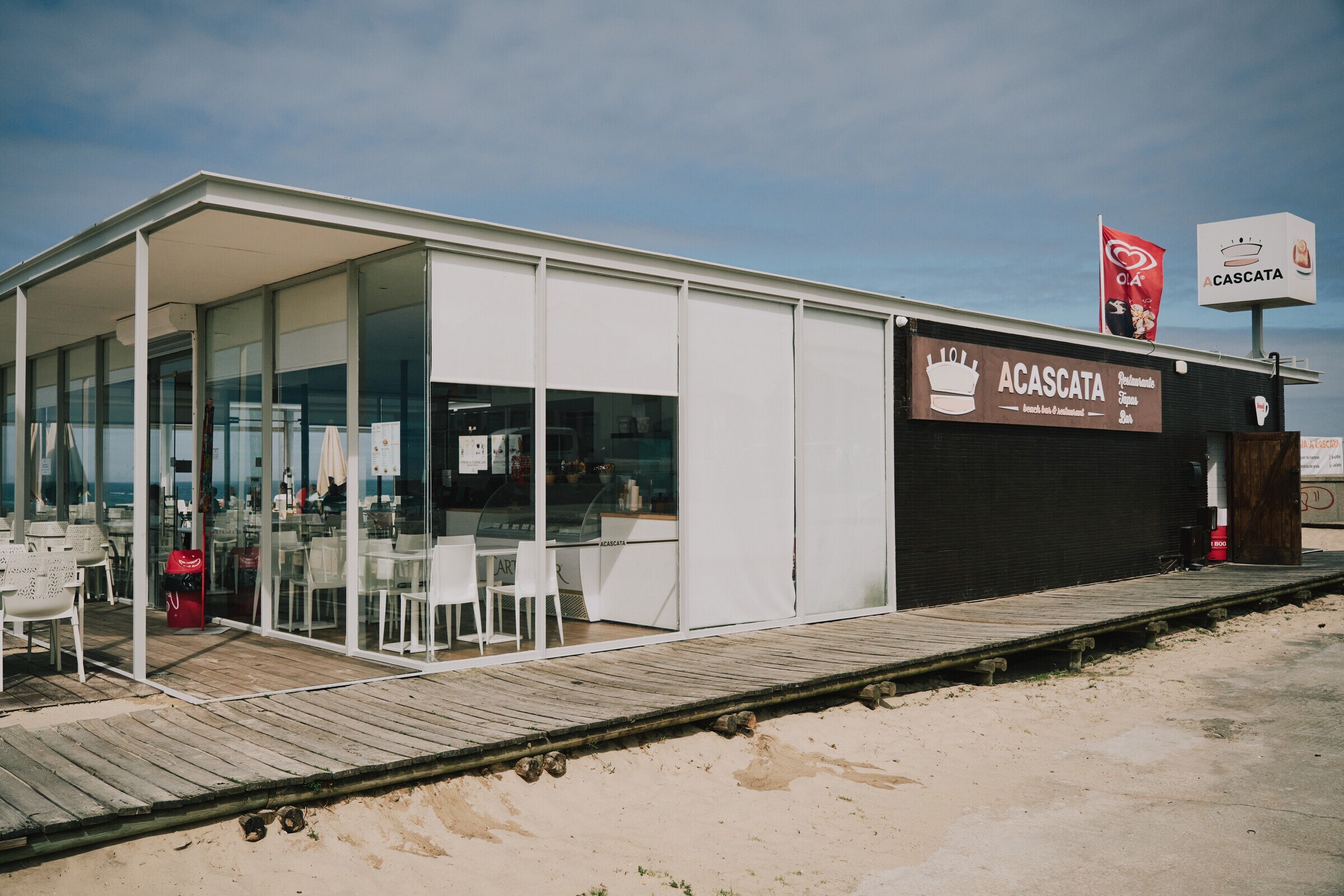 Localizada no areal da praia de Leça da Palmeira, apresenta uma ementa diversificada, onde se encontram saladas, hambúrgueres, francesinhas, sanduíches, pratos de grill, pequenos-almoços, gelados, waffles e muito mais.