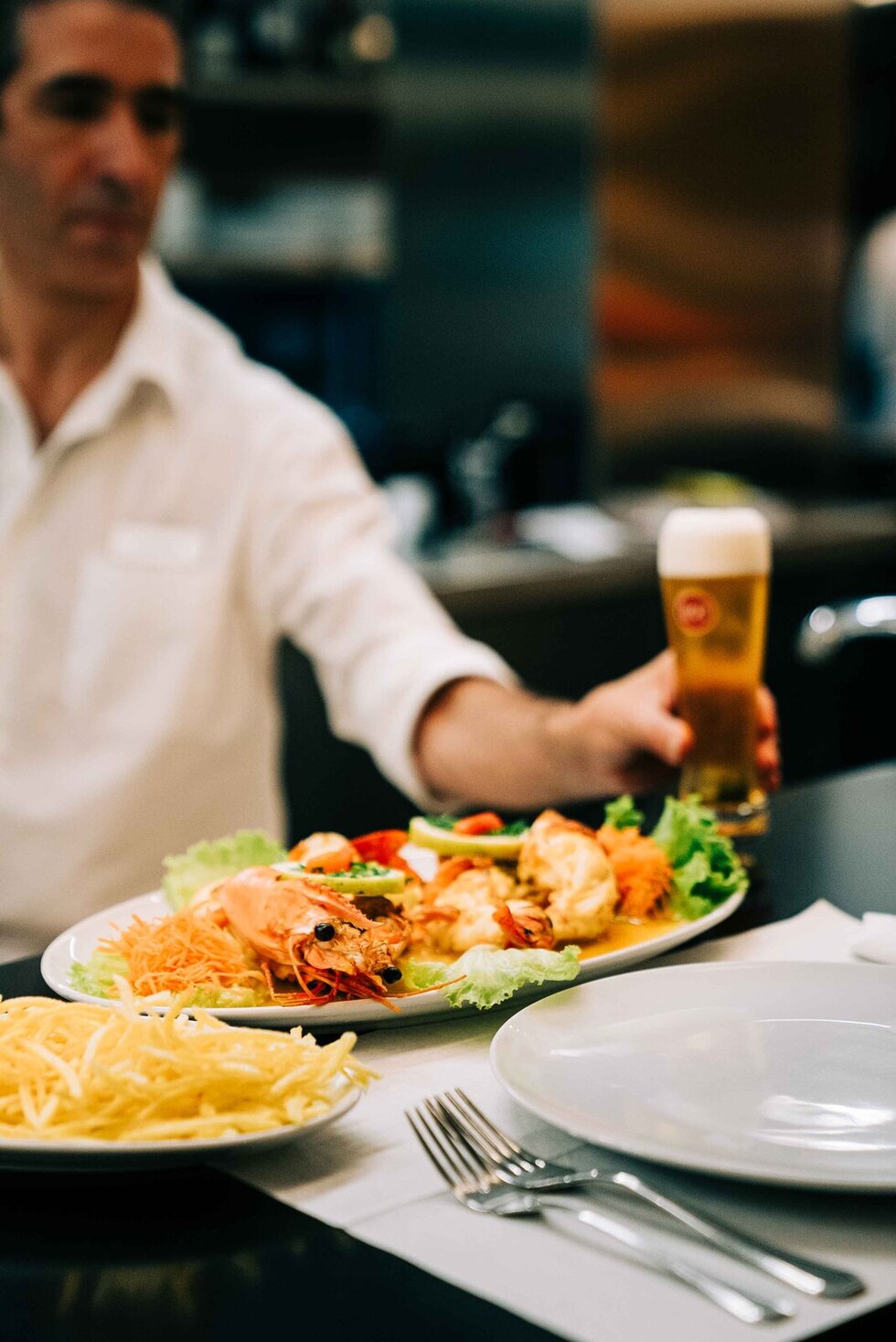 Há muito que se pode dizer quando se entra pela porta da Marisqueira de Matosinhos às 12h00 e todas as mesas estão reservadas. Não é uma técnica de marketing, é apenas um típico serviço de almoço na Marisqueira de Matosinhos, que segue a tradição das grandes marisqueiras da cidade. Com instalações modernas e recentemente remodeladas, o ambiente é requintado e seleto, mas ao mesmo tempo relaxado, especialmente ao balcão.