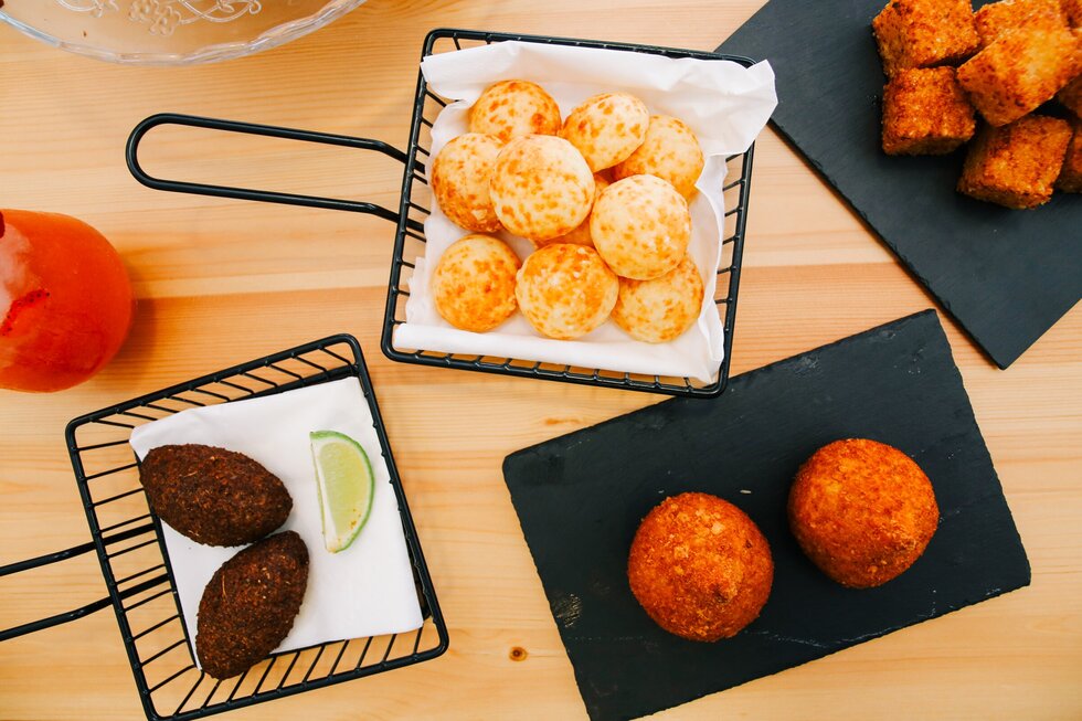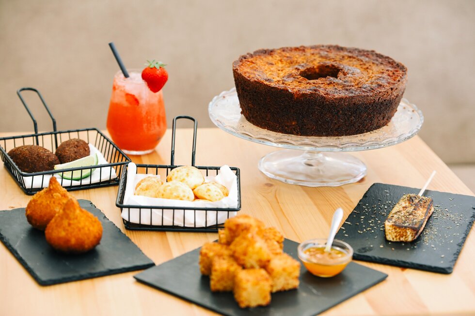 os cocktails diversos acompanham-se por petiscos e pratos nomeadamente da cozinha tradicional brasileira que saem diariamente.