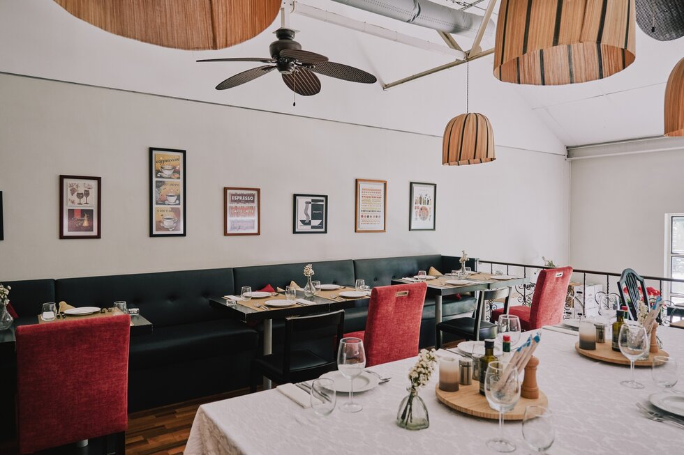 Há um cuidado em combinar ingredientes italianos com fornecedores locais, sempre com atenção à sazonalidade, como é exemplo, a massa com nduja e camarão, finalizada com a cremosa burrata fresca. As pizzas são de inspiração romana, com massa fina e crocante, onde se sente o sabor autêntico em cada fatia, numa combinação equilibrada que mistura tomates frescos da estação e queijo mozzarella de textura macia, realçando os aromas do pomodoro e complementada com folhas frescas de rúcula e manjericão. O espaço interior tem dois pisos, sendo que no segundo piso há uma sala com uma única mesa grande, perfeita para grupos.