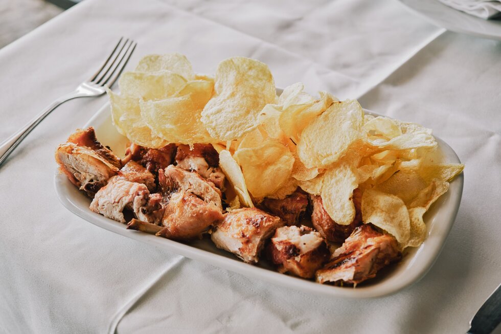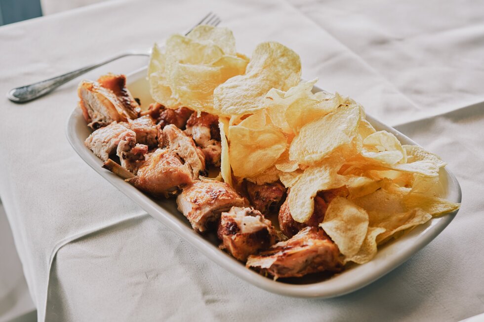 Junto à praia de Leça da Palmeira, este espaço dedica-se ao serviço de churrasqueira com especialidade em frango do churrasco servido com uma batata