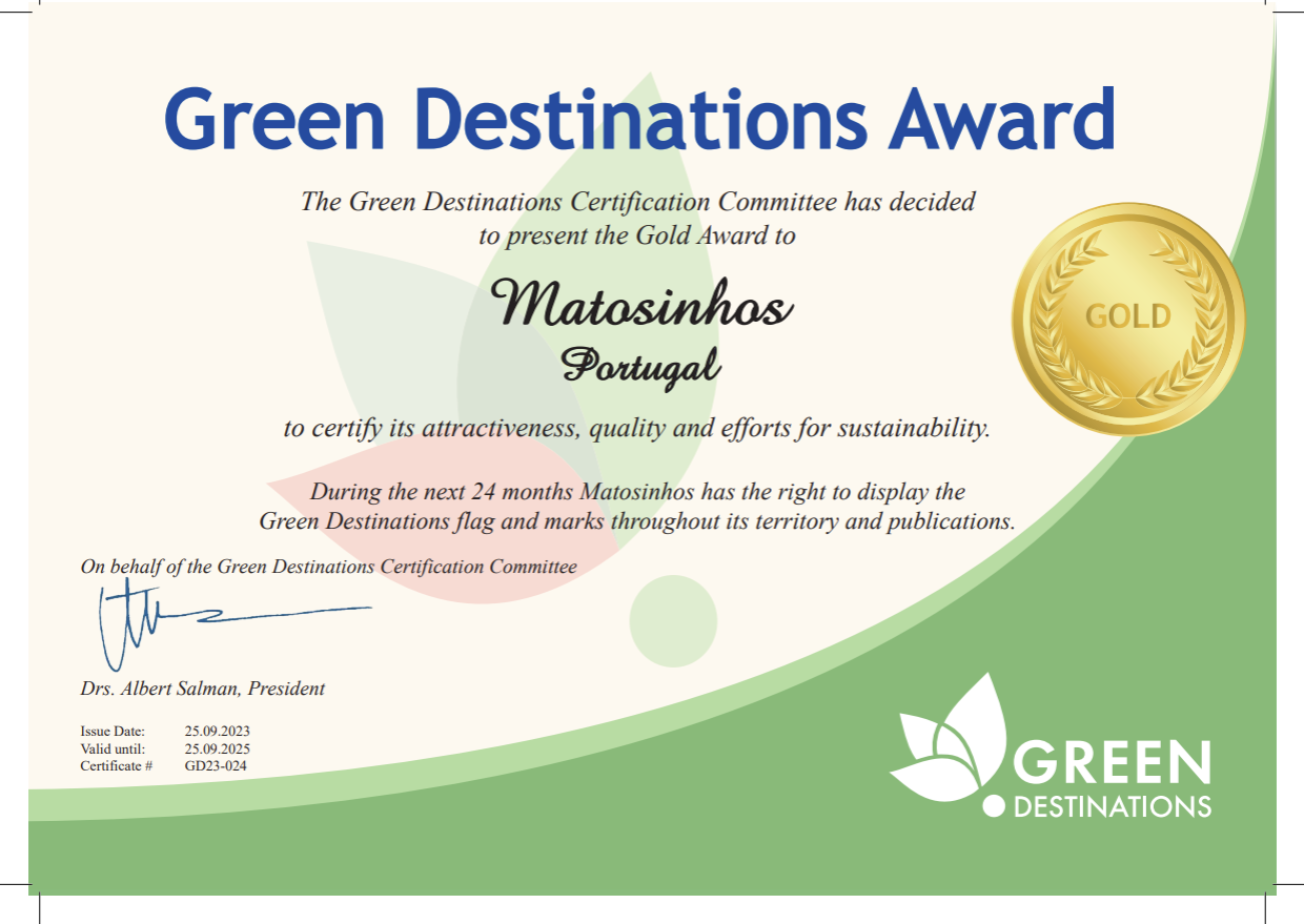 Matosinhos foi premiada com o título de "Quality Coast Gold Award" pelo "Green Destinations", em 2024, reconhecendo o seu compromisso com o turismo sustentável, ambiental, cultural e socioeconómico. Além disso, a cidade faz parte do projeto europeu "GreenInCities", que visa a regeneração climática de áreas urbanas através da natureza, tecnologia e comunidade.